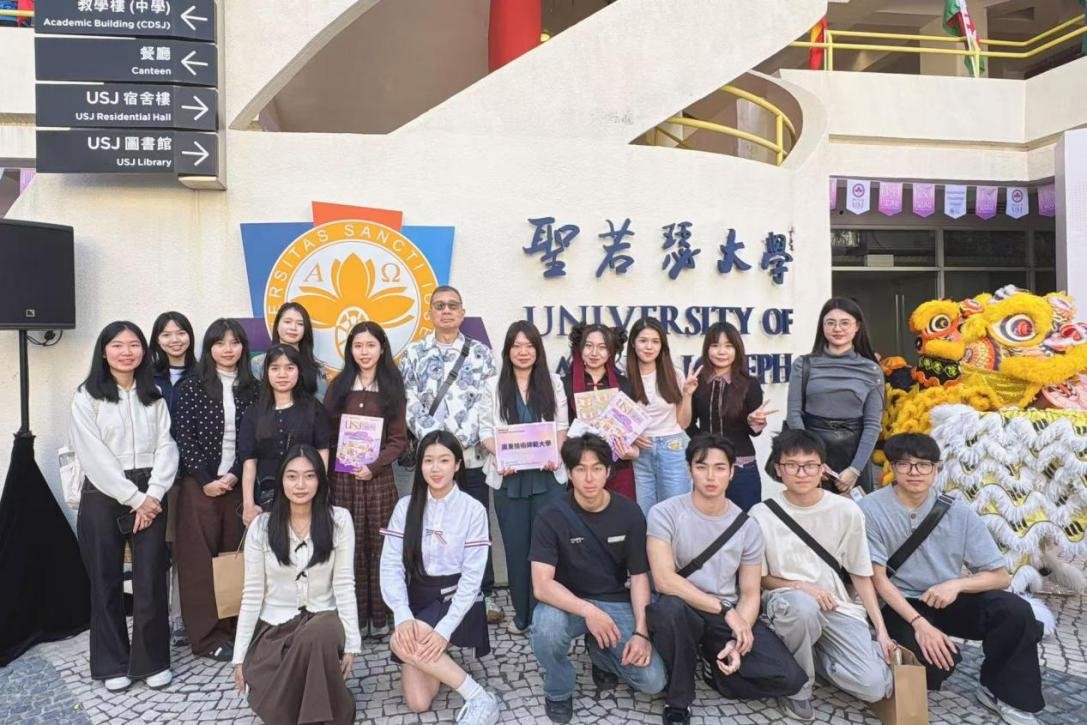 为深化粤港澳青年文化交流,拓展学生国际视野,丰富实践育人内涵,3月14日,我校首次组织师生代表赴澳门参加圣若瑟大学2026年国际文化嘉年华活动。本次交流团由美术学院周峻岭教授、国际教育学院苏婕老师带队,共15名学生参与,其中本科生9人、研究生6人。师生一行参观了圣若瑟大学校园环境、实验室及图书馆,深入了解该校办学特色。